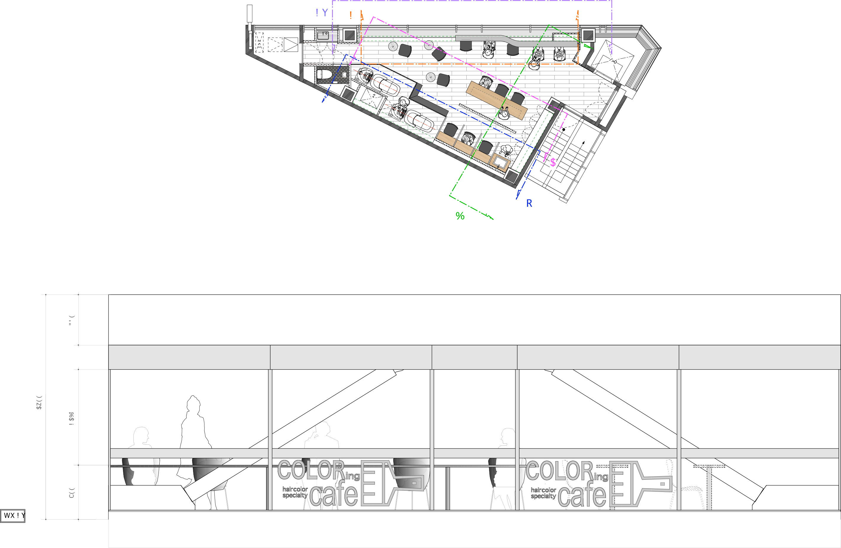 鏡を置かずお茶を飲みながらゆったりとヘアカラーが出来る、カフェのような雰囲気でとのオーナーの依頼でデザインが決まりました。